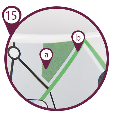 Porównanie kolorów osiągniętych metodą druku CMYK (a) oraz według Pantone (b):
